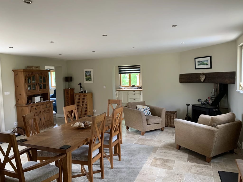 This well-built 4-bedroom, 3-bathroom home offers a comfortable layout with a blend of modern construction and traditional features such as exposed beams and a wooden staircase. The entrance opens into a bright dining room with a wood burner that heats six radiators. The ground floor is tiled and double glazed throughout. From here, you move into a well-equipped kitchen with pleasant views over the garden. The lounge, also featuring exposed beams and a log-burning stove, opens onto a rear terrac...