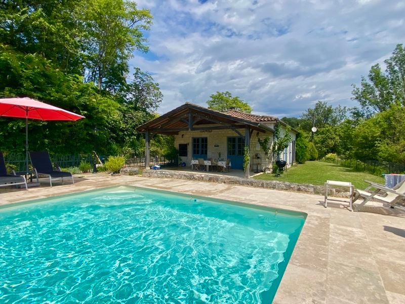 This pretty 4-bedroom farmhouse is built on a hillside and overlooks vineyards, woodland and fields. There's a lovely pool, terrace, a converted pigeonnier, large barn and approximately 5 acres of land. The popular town of Tournon d'Agenais is within easy reach and the famous Bastide town of Cahors is 30mins away.There's 127m2 of habitable space and the dining room and living room look out across the valley. There are beautiful exposed stone walls and floors as well as a large fireplace with woo...