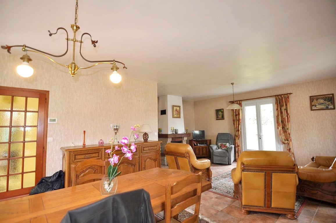This house was built in 1998 and includes a 120 m2 flat on the ground floor and a 36 m2 flat on the first floor. Services : mains drainage - gas central heating - double glazing - PVC windows - electric gate - water softener. This property has 3 bedrooms - 1 lounge/dining room with fireplace - a living room (T1) - a bathroom and a shower room - a large garage in the basement with workshop/ cellar. All in very good condition. Shops within 300 metres of Ribérac town centre. Price including age...