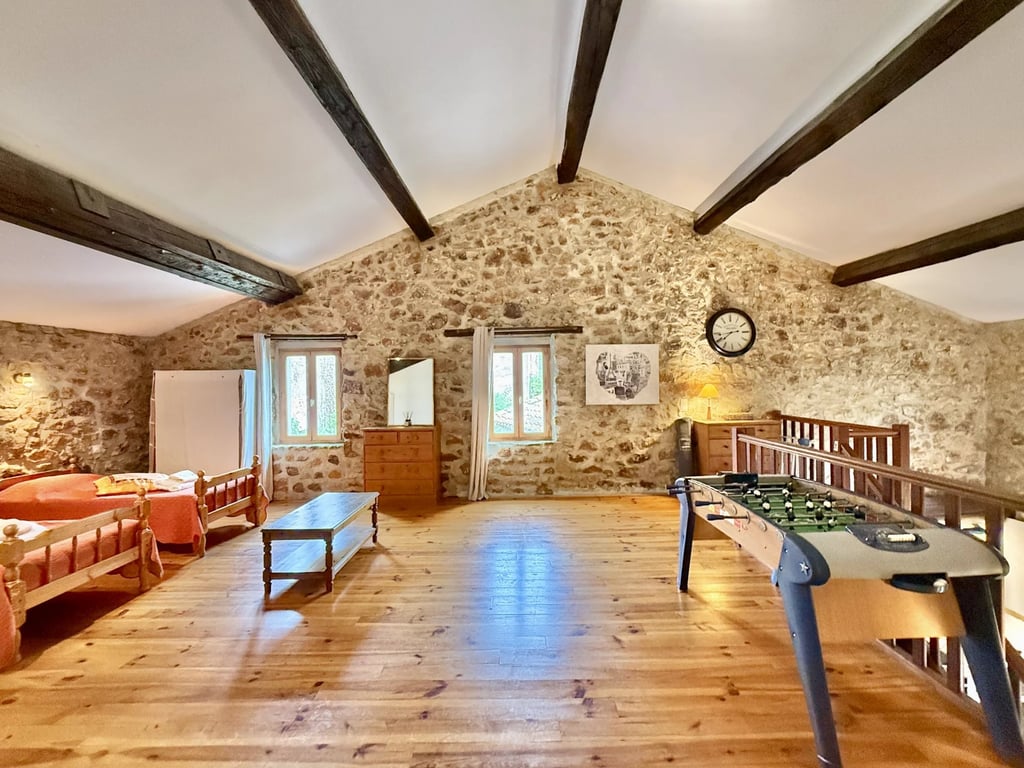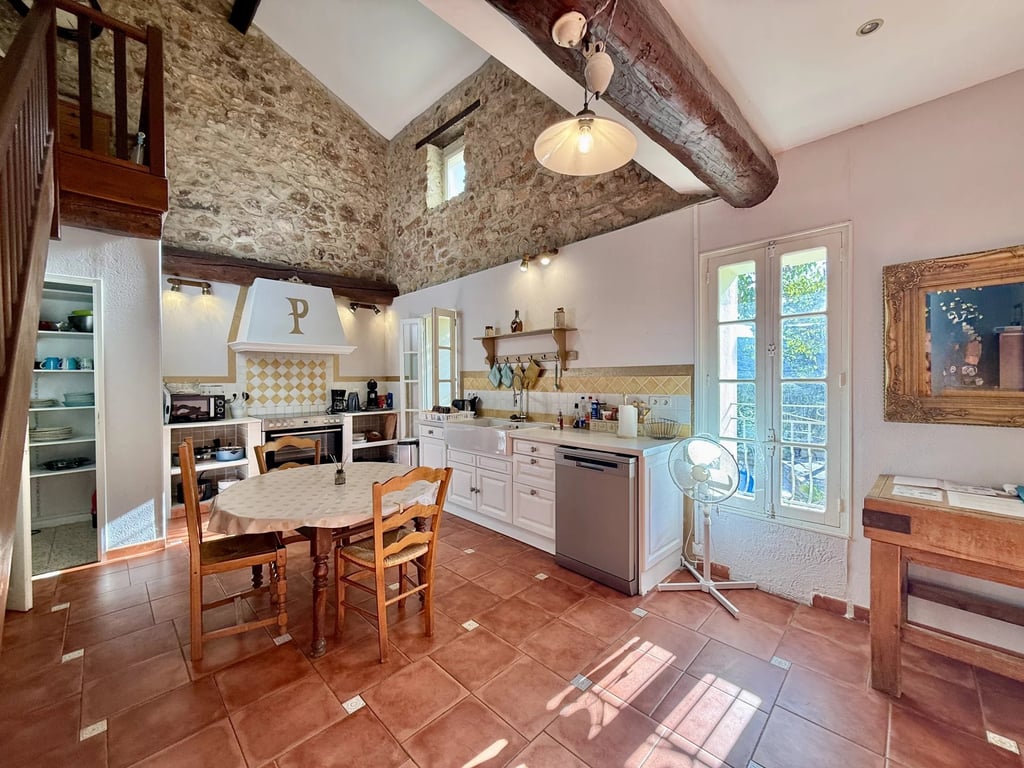 Nestled in the tranquil heart of the Corbières countryside, on the outskirts of the quaint village Saint-Andre-de-Roquelongue, this beautifully restored stone farmhouse offers rustic elegance with modern comfort. Thoughtfully renovated with authentic materials and contemporary touches, it features a spacious open-plan living area with a cathedral ceiling, exposed beams, and a cosy wood stove perfect to warm up those chilly winter evenings. There are three large bedrooms, a flexible mezzanine s...