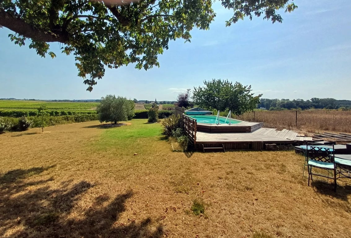With over 2 acres of garden and meadow, this lovely double glazed property on the edge of a village, boasts uninterrupted views over rolling vineyards, an above-ground pool, and a pretty outbuilding in a very private walled garden with fruit trees. The main house offers spacious and light-filled living across two floors. On the ground floor, you'll find a spacious recently fitted kitchen-diner which opens on to the terrace, a cosy living room with a pellet-burning stove, a shower room with WC, ...