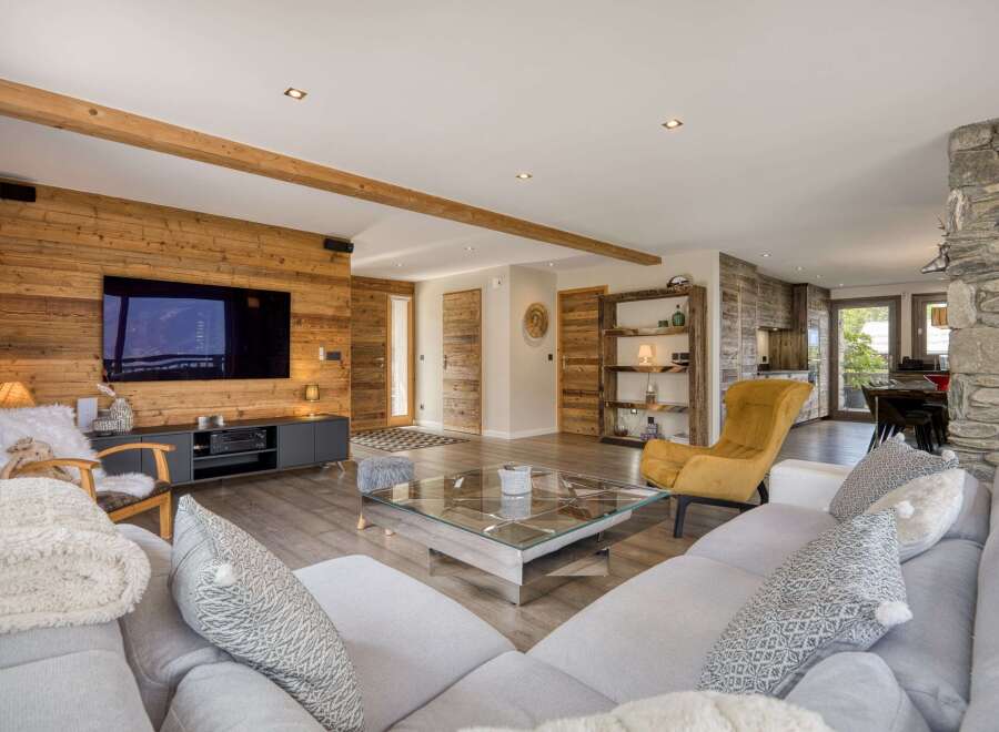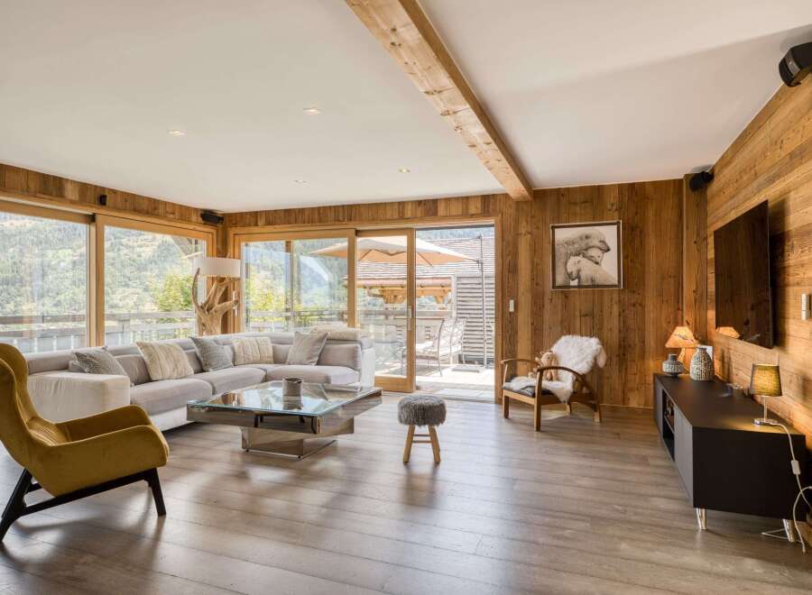 Overlooking the valley of Saint-Gervais-les-Bains, this prestigious chalet stands out for its commanding position and breathtaking panorama of the surrounding peaks. Set in a peaceful, verdant environment, it combines alpine elegance with contemporary comfort, offering a refined and harmonious living space. The garden level includes two ensuite bedrooms, a separate WC, and a laundry room. On the ground floor, the open kitchen flows into a bright dining and living area extended by balconies and a...