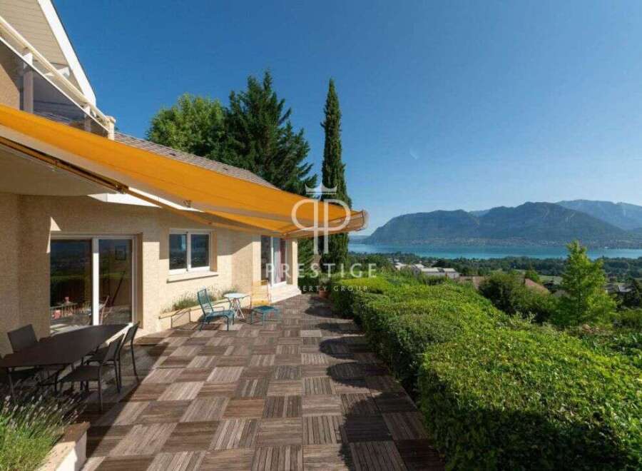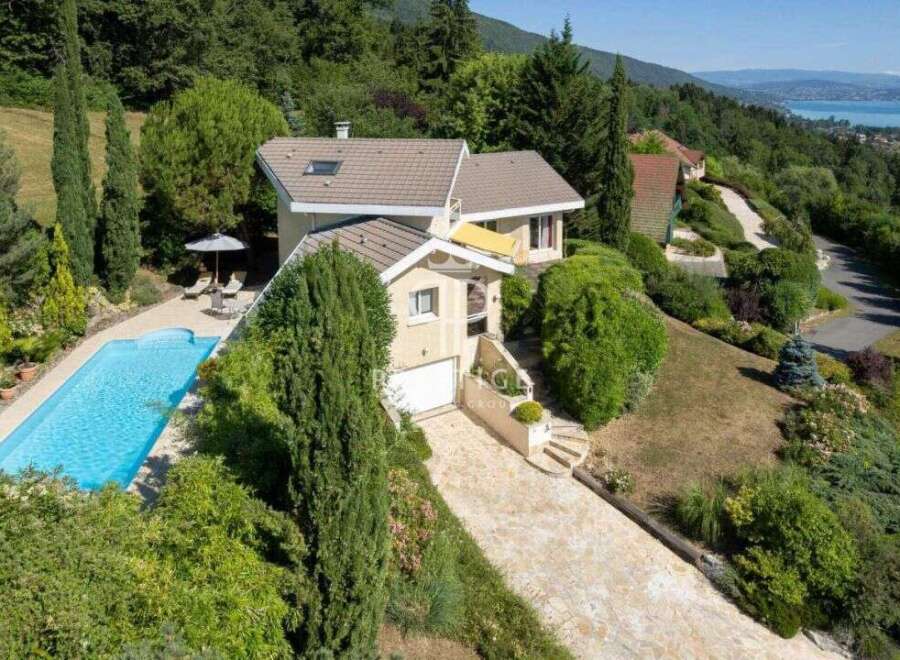 Bright 4 bedroom house in a quiet area in Saint Jorioz, with swimming pool and fabulous panoramic views of the lake.The 140m2 property (usable floor area 174 m2) features 4 bedrooms, 3 bathrooms, set in a garden of 1,422 m2, with swimming pool, garage and panoramic views of the lake and mountains. Ground floor : entrance hall, kitchen, sitting/dining room with fireplace, en-suite bedroom with WC, walk-in wardrobeFirst floor : 2 bedrooms, shower room WCBasement : en-suite bedroom with WC, garage ...