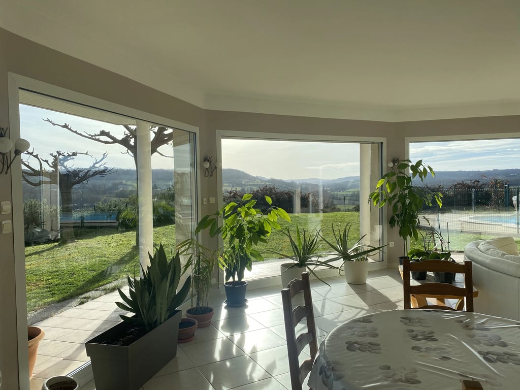 This contemporary single-storey house, built in 2012, combines modern comfort with seamless integration into an exceptional panoramic setting. Located near the village of Sainte-Juliette, in the Tarn-et-Garonne, the property offers 147 sqm of living space on a 4,110 sqm plot. The open-plan living room and kitchen provide a generous 66 sqm and form the heart of the home. Filled with natural light in winter and pleasantly cool in summer, it features large picture windows offering an almost 180° p...