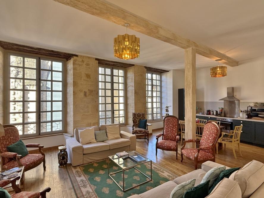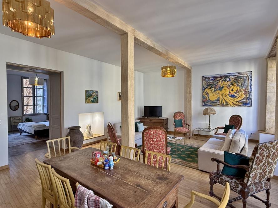 THE APARTMENT (97.55 m2 Carrez): Located on the first floor, running east to west, it comprises: entrance hall, living room with fitted kitchen, two bedrooms with shower rooms and toilets, and a small adjoining bedroom.THE STUDIO (29.08 m2 Carrez): Ground floor of the building and consists of a living room with kitchen, a bedroom and a shower room with WC. Direct access to the courtyard.THE COURTYARD AND THE GARDEN: They cover approximately 380 m2 in the heart of the medieval town. Access is v...