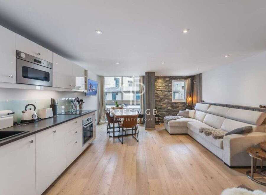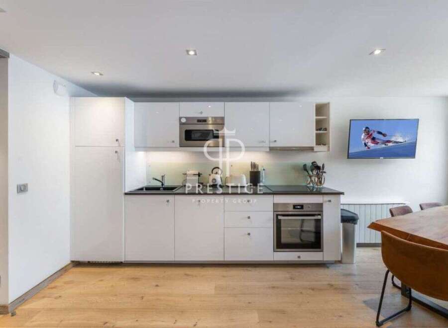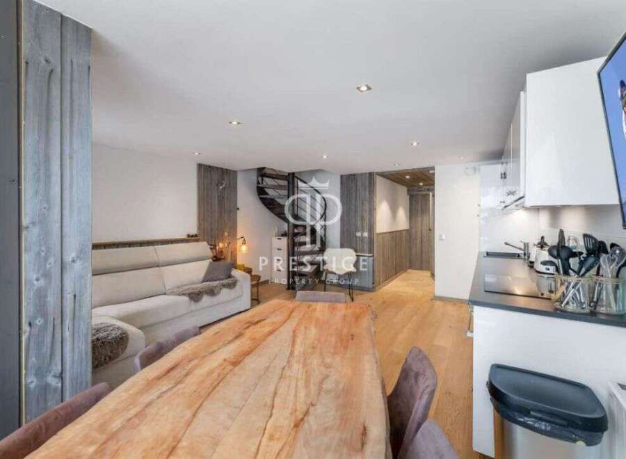 Bright and beautifully refurbished 3 bedroom apartment, located in a quiet setting in Val Thorens, with a total spacious and bright living area of 67m2, which is set out over 3 floors.Entirely renovated using high quality materials and located on the top floors of a quiet residence, features include, on the entrance level: entrance hall; storeroom equipped with a washing machine, dryer and a shoe dryer; independent WC; modern fitted and equipped kitchen open to the dining room and the living roo...