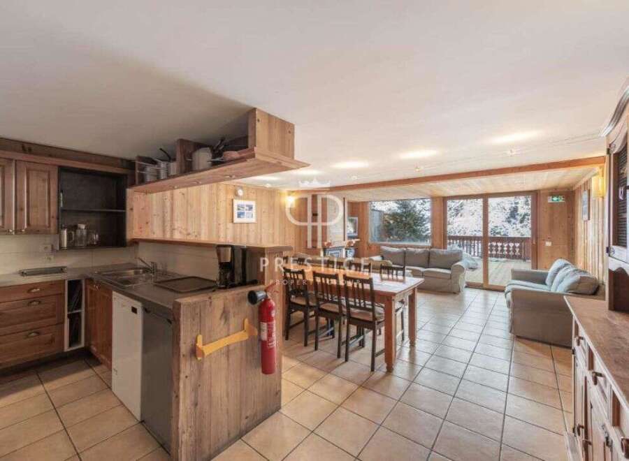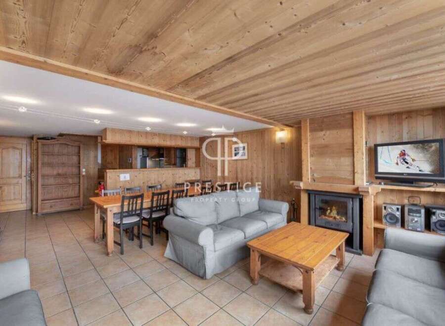 With simply stunning mountain and ski slope views, this bright and well maintained 6 bedroom house/apartment is ideally located at the foot of the ski slopes, right in the heart of a dynamic area of Les Menuires, close to all amenities and with the ability to ski in/ski out.With a living area of 118m2, which is arranged on 4 level, features include:First level: spacious and bright living room with an open kitchen, fireplace as well as access onto a west facing balcony with a spa. On the 3 follow...
