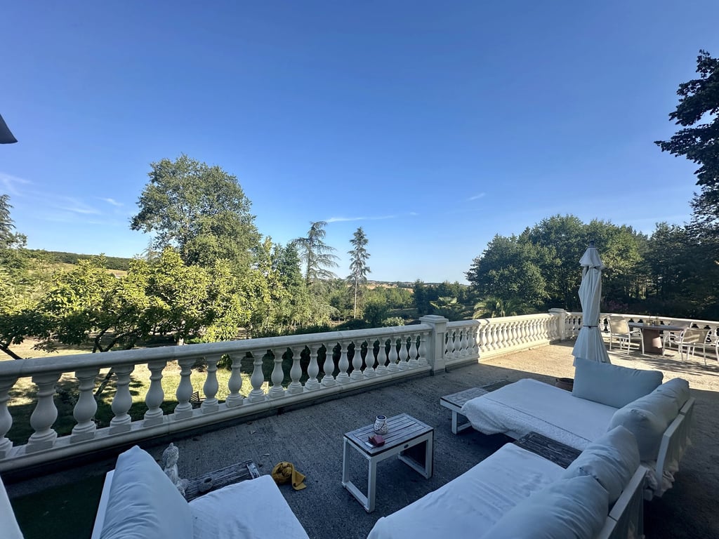 Set in a peaceful and private location with no immediate neighbours, this spacious property enjoys panoramic views across the surrounding countryside. It's just 20 minutes from Eymet, a short drive to a local village with everyday essentials, and only 12 minutes from the town of Marmande, where you’ll find all necessary amenities. The house is spread across three levels, offering generous living space and plenty of flexibility. On the ground floor, the fitted kitchen next to the bright living a...