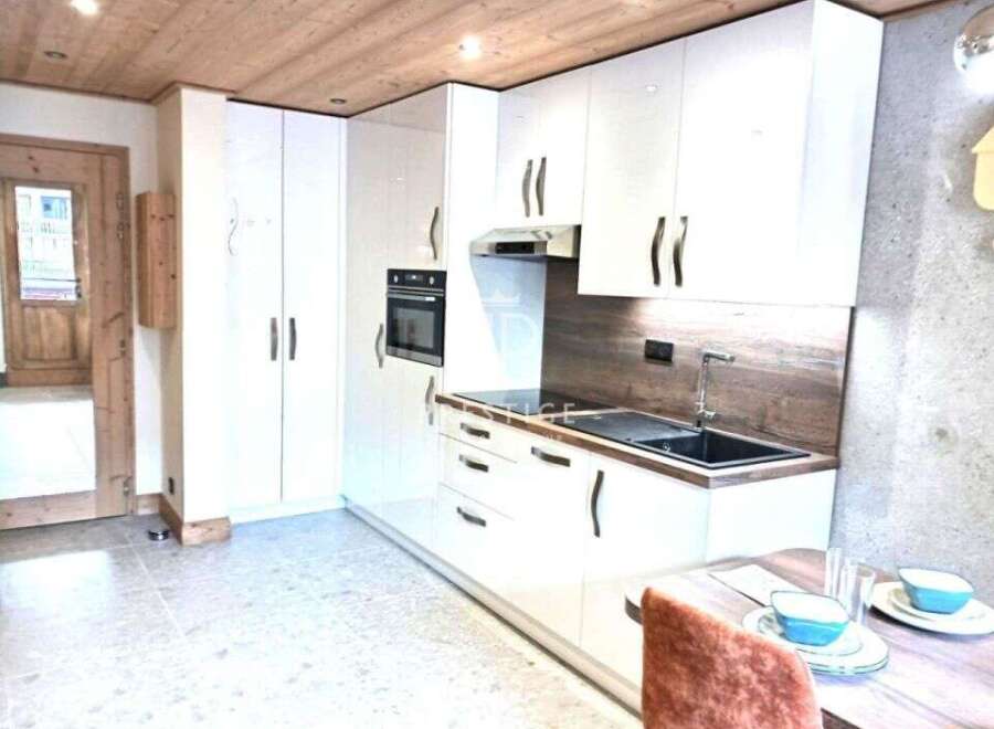 Beautifully renovated using top quality materials, this bright 1 bedroom apartment is situated in a prime location and has a large 14m2 south-facing terrace with a magnificent view of the mountains and the ski slopes of Val Claret. Situated just a few metres from the ski lifts and shops, this studio is a real gem in Tignes. Features include: fitted and equipped kitchen with made-to-measure cupboards, slate and marble-look tiling, household appliances from major brands, induction plates, dishwash...