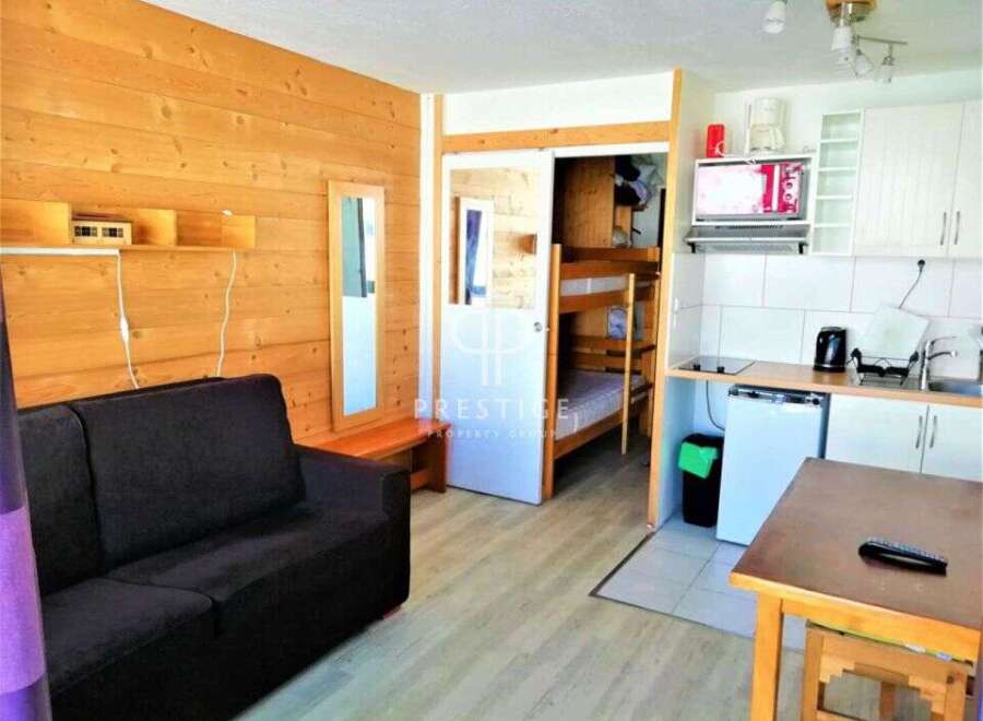 Pretty studio apartment with magnificent views of Lake Chevril, located right in the heart of Tignes Lavachet. This apartment offers exceptional views of Lake Chevril, creating a serene and inspiring atmosphere. Features include a spacious living area with a fully equipped open kitchen, bathroom with a WC, separate mountain corner in the entrance with a set of bunk beds, providing a comfortable space for guests or for more privacy. There is also a ski locker included in the annex.This exclusive ...