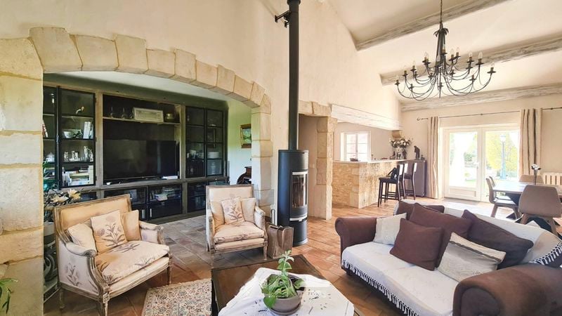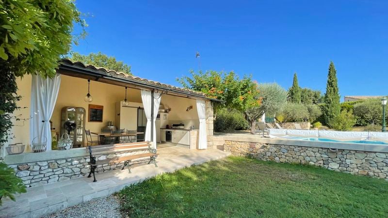 Located 10 minutes from Uzes and just 3 minutes from the shops in Saint-Quentin-la-Poterie, this former sheepfold manages to strike the perfect balance between the traditional and the contemporary. The outside space, with the summer kitchen, terrace and swimming pool are perfect for the long summers.The home centers around a 50 m2 living area that includes a living room, dining space, and snug. Exposed beams, stone walls, and terracotta floors give the room a warm, authentic feel. The fully equi...