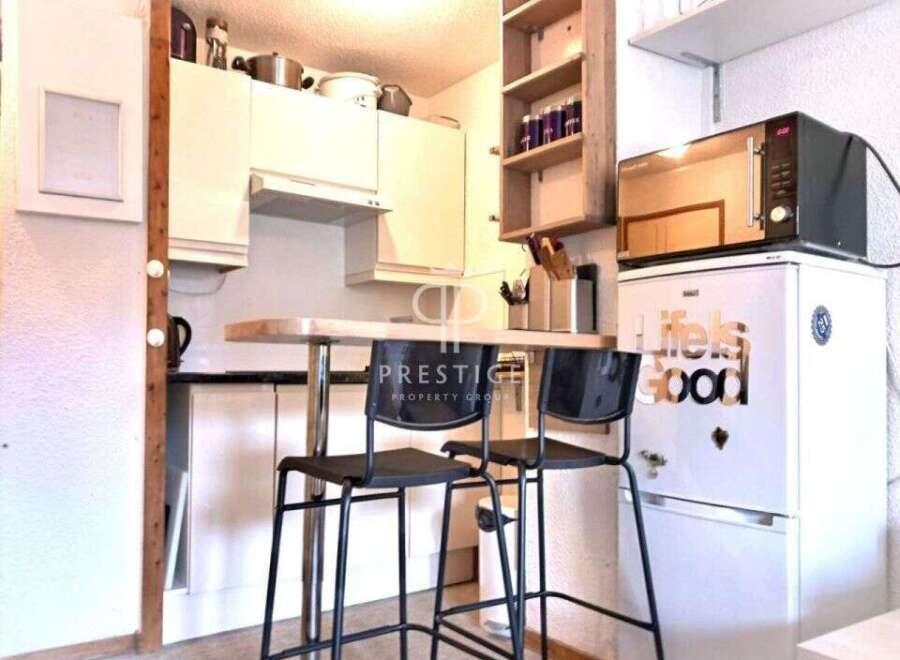 Located in Val d'Isere, this charming 1 bedroom apartment consists of an entrance hall with a boot warmer, American style fitted kitchen equipped with a 4-burner electric hob, a stainless steel sink, a washing machine/tumble dryer and storage cupboards. Bedroom with a double bed and a window, living room, bathroom, separate WC and a balcony. Double-glazed patio doors lead out to the balcony, which has views across the resort to the north and north-west. The apartment is equipped with underfloor ...