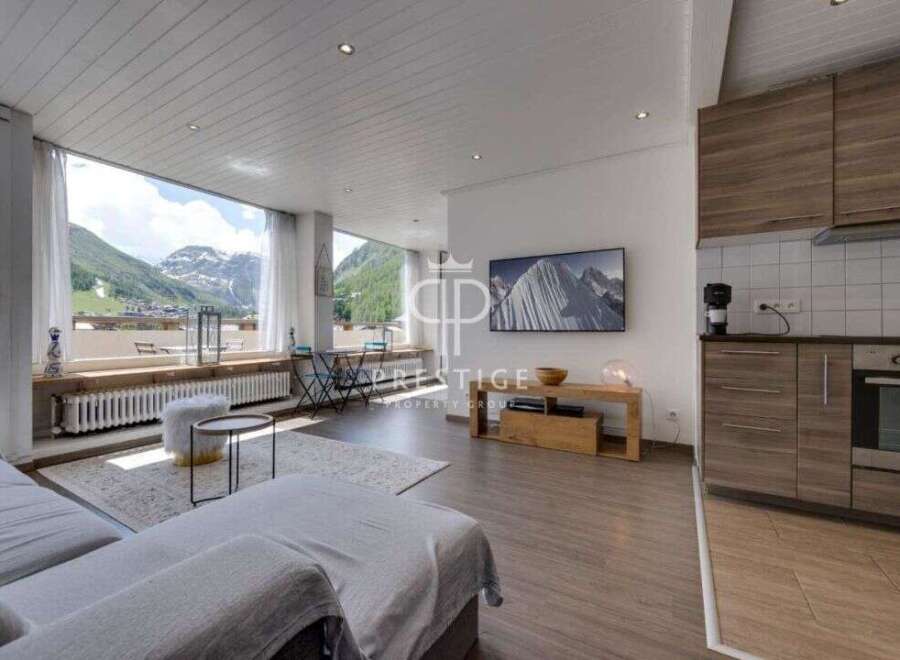 Beautiful 1 bedroom apartment, which is bathed in light thanks to its south-east exposure and large bay windows and with stunning panoramic views over the village and the most beautiful peaks of Bellevarde, Solaise and the Charvet rock. Features include: entrance hall with storage space, fitted kitchen opening onto the living room with access to a balcony and a bedroom with its own bathroom and laundry area. ItThe property is sold furnished and has 2 ski lockers.
