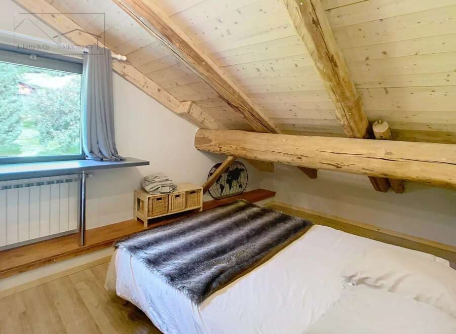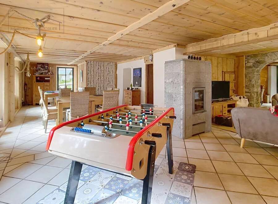 Discover this magnificent 380 m2 farmhouse located in Vallorcine, just a stone's throw from Switzerland. With 9 rooms, it offers the perfect space for family life, receptions or a bed & breakfast activity. The rustic charm of exposed beams blends harmoniously with modern comforts, creating a warm and welcoming interior. Fully furnished, this property is ready to welcome you. The fireplace adds a cosy touch, ideal for winter evenings. What's more, the triple glazing guarantees energy efficiency ...