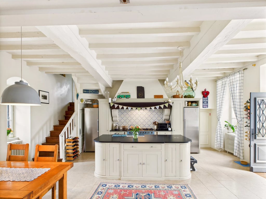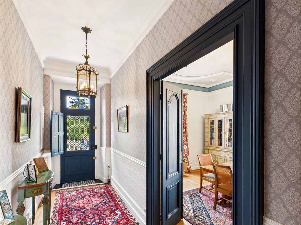 #This magnificent historic stone residence combines authentic charm with high-end features, offering an elegant lifestyle and flexible accommodation options. The property is accessed via a majestic tree-lined driveway, with some trees estimated to be between 200 and 300 years old. From the driveway, you enter the main floor, which reveals a graceful, classical entrance hall, a spacious living room, a dining room, a fully equipped kitchen with central island, and two bedrooms, each with its own...