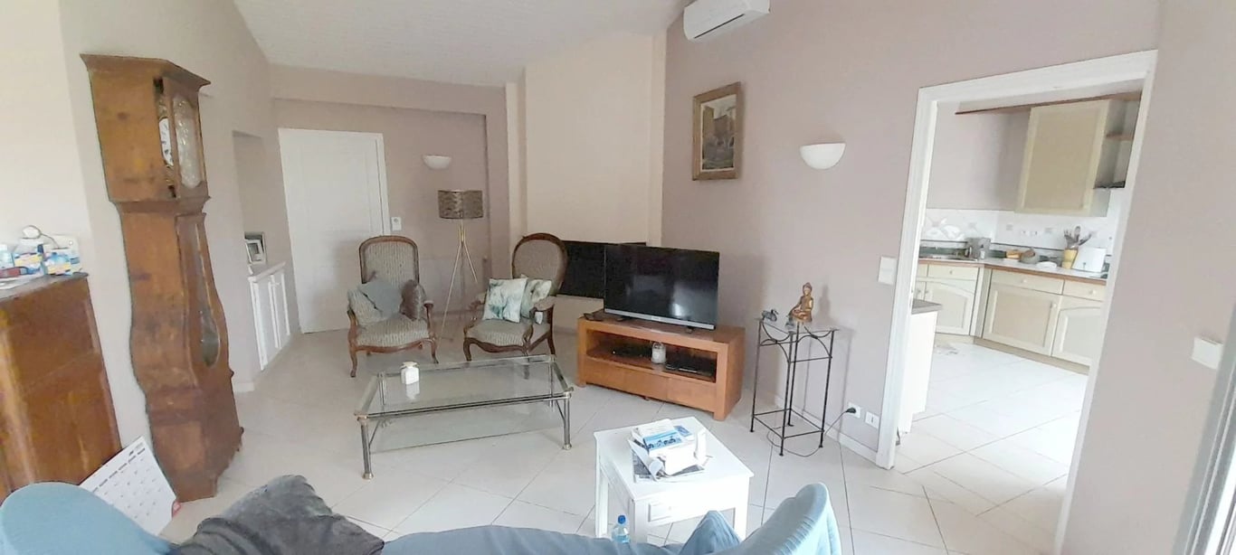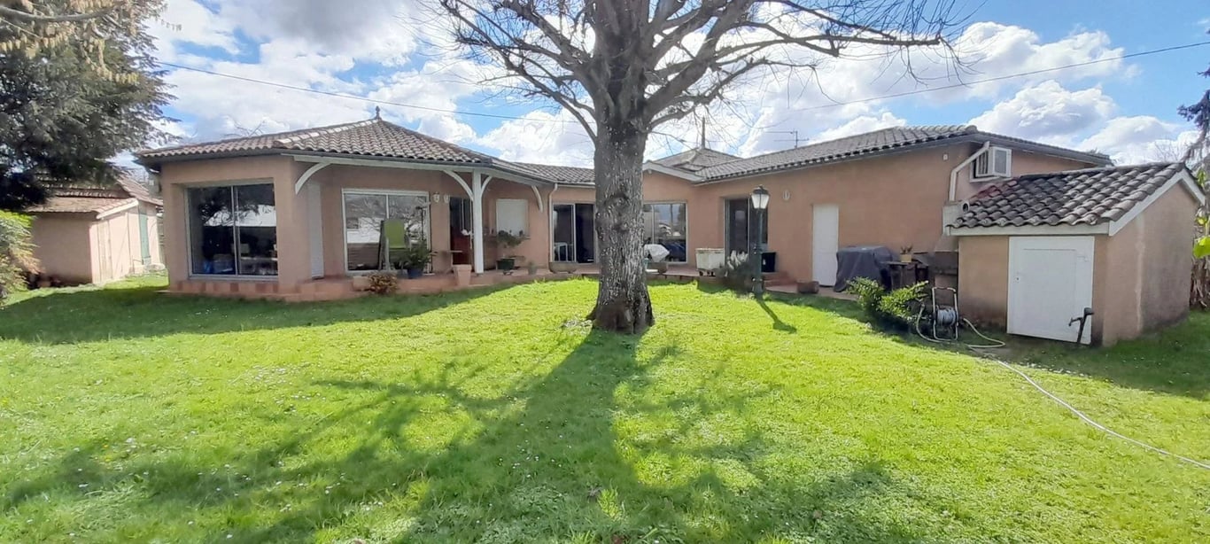 This house in a quiet area, offers beautiful and bright living accommodation. Spread across a single level. It consists of: entrance hall, living room with fireplace, dining room, kitchen, a second living room with access to the garden with swimming pool. Two spacious bedrooms, dressing room, bathroom. A third bedroom, with shower room and WC. A spacious 35 m2 garage. The property is set in 1533 m2 of wooded, fully fenced grounds with a well. A charming pigeonnier-like building is used as a wo...