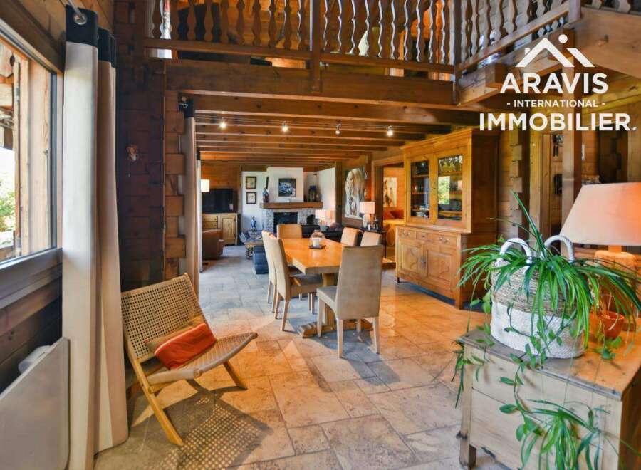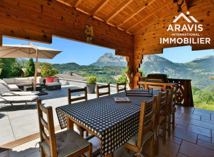 Perched on the heights of Arches-la-Frasse, this log-built chalet offers an exceptional living environment where absolute tranquility meets a breathtaking panoramic view. Facing due south, it enjoys an unobstructed outlook over Cluses, the Pointe d'Areu, and the entire Aravis mountain range--a natural backdrop one never tires of admiring. Like a terrace suspended above the mountains, the large sun-drenched deck is one of the chalet's major highlights. Its generous size allows for numerous possib...