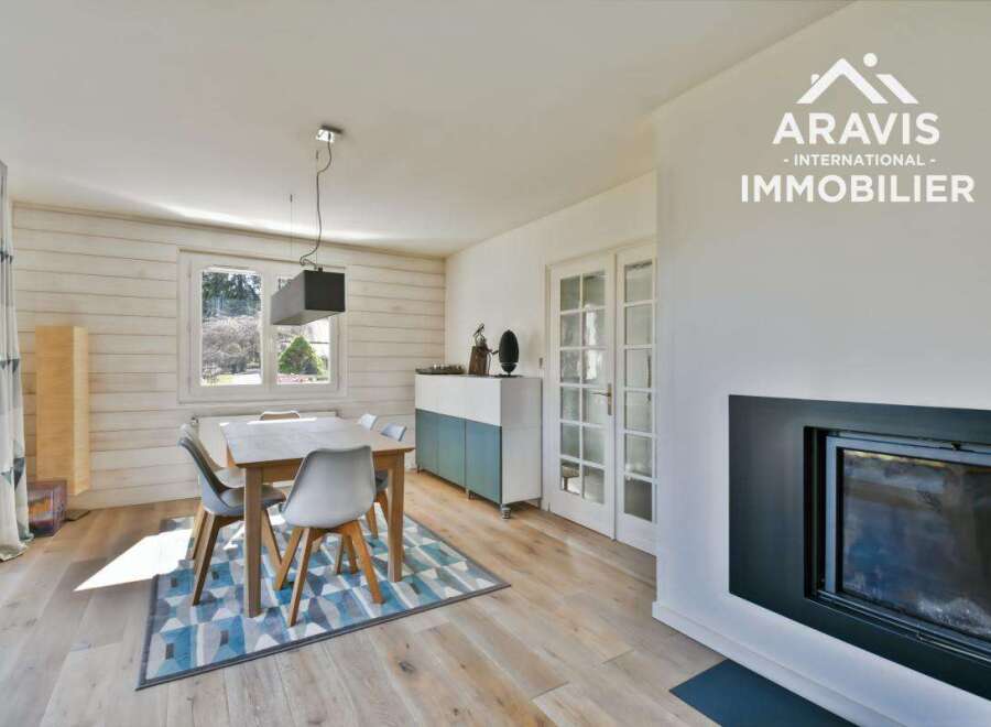 In a privileged setting, this house offers a magnificent view of Mont Blanc. Situated in a quiet, sunny location, it was built in 1979 and has been completely renovated. With around 145 m2 of living space, it sits in 1,462 m2 of enclosed grounds. On the ground floor, you will find an entrance hall leading to a modern, fully-equipped kitchen, a study and a large, bright living room with a wood-burning stove. This level also includes a bedroom, a contemporary shower room and a separate toilet. Ups...