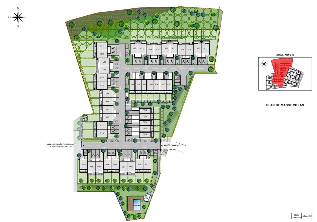 Frejus, Var An idyllic living environment, just 5 minute driving distance from the heart of Fréjus. Enjoy the tranquility of a wooded park with swimming pool and the comfort of a new house with private garden and garage. This secure and private Domaine includes villas with 2 and 3 bedrooms, semi-detached or terraced with up to 83 m2 of living area. Off plan properties with a provisional delivery in June 2027. Low French stamp duty. 40 mins to Nice International airport by car. VILLAS The furn...
