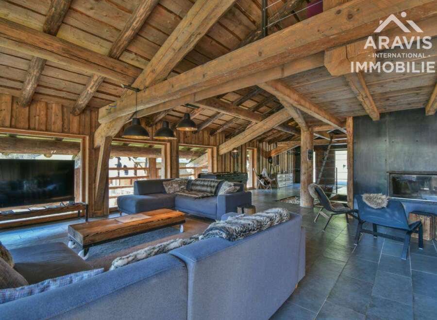 Stunning chalet of approximately 400m2 for 320m2 of living space, built in 2020, combining both noble and rustic materials with a contemporary feel. It has an ideal location, with a dominant view and sunshine all day long. Spread over 4 levels, it consists of: On the ground floor, an independent 2-bedroom apartment, living room with open kitchen with access to a large semi-covered terrace. This level also offers a beautiful relaxation area with hammam and an indoor jacuzzi, 2 bathrooms and 2 toi...