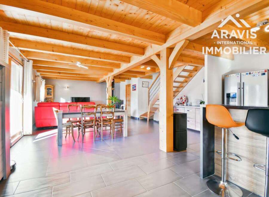 Exclusively with Aravis International, discover this charming house located in a peaceful setting in the heart of the authentic village of Manigod. Offering a breathtaking view and generous sunshine, you will be seduced by its large terrace of more than 45 m2, facing South-West, ideal for your moments of relaxation outdoors. The house is composed of: On the garden level: A large living room of 54 m2 including an open kitchen, a friendly dining room and a warm living room. This space gives direct...