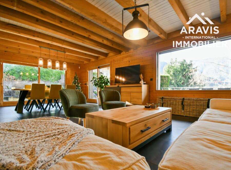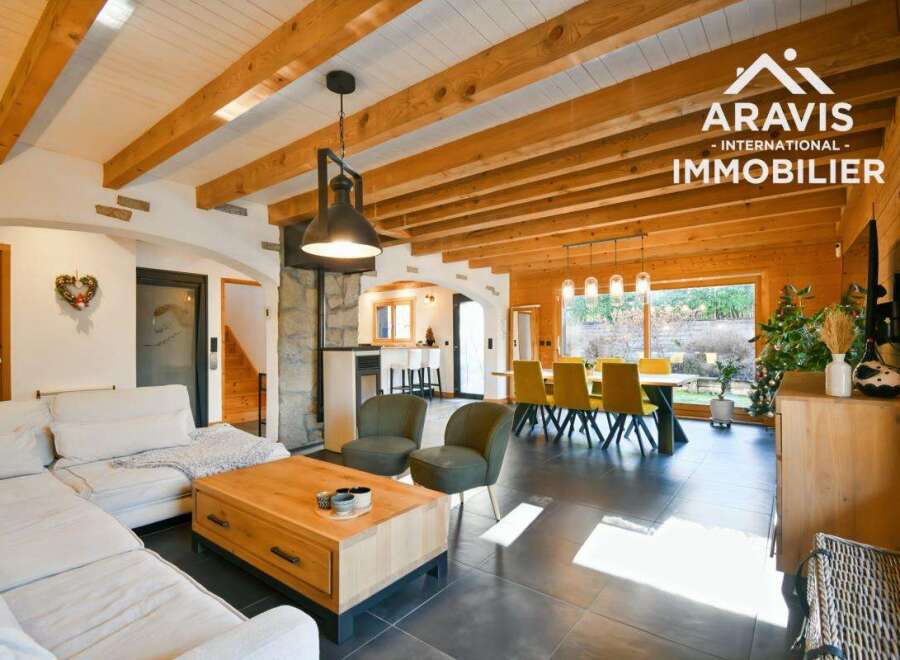 Aravis International presents this superb family home of over 300 m2 of usable space, including 195 m2 of living space, located in a quiet, sunny, and highly sought-after area of Thônes, within easy walking distance of the town center and its shops. This rare property offers a privileged living environment, ideal for a family seeking comfort, spaciousness, and tranquility. The house is spread over three levels. On the garden level, you'll find a beautiful, light-filled living area comprising a w...