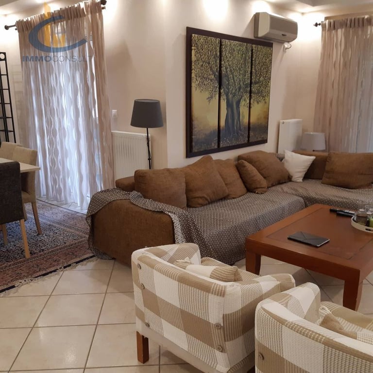 Agios Stefanos, Dionysos: Near the Dionysos Town Hall, luxurious construction of 2004, 3 bedrooms, bathroom, WC with shower, comfortable living room, fireplace, alarm, small yard, in excellent condition, no utilities, leased with a rent of €900, ideal for investment Price €295,000 | Property Code: #18154