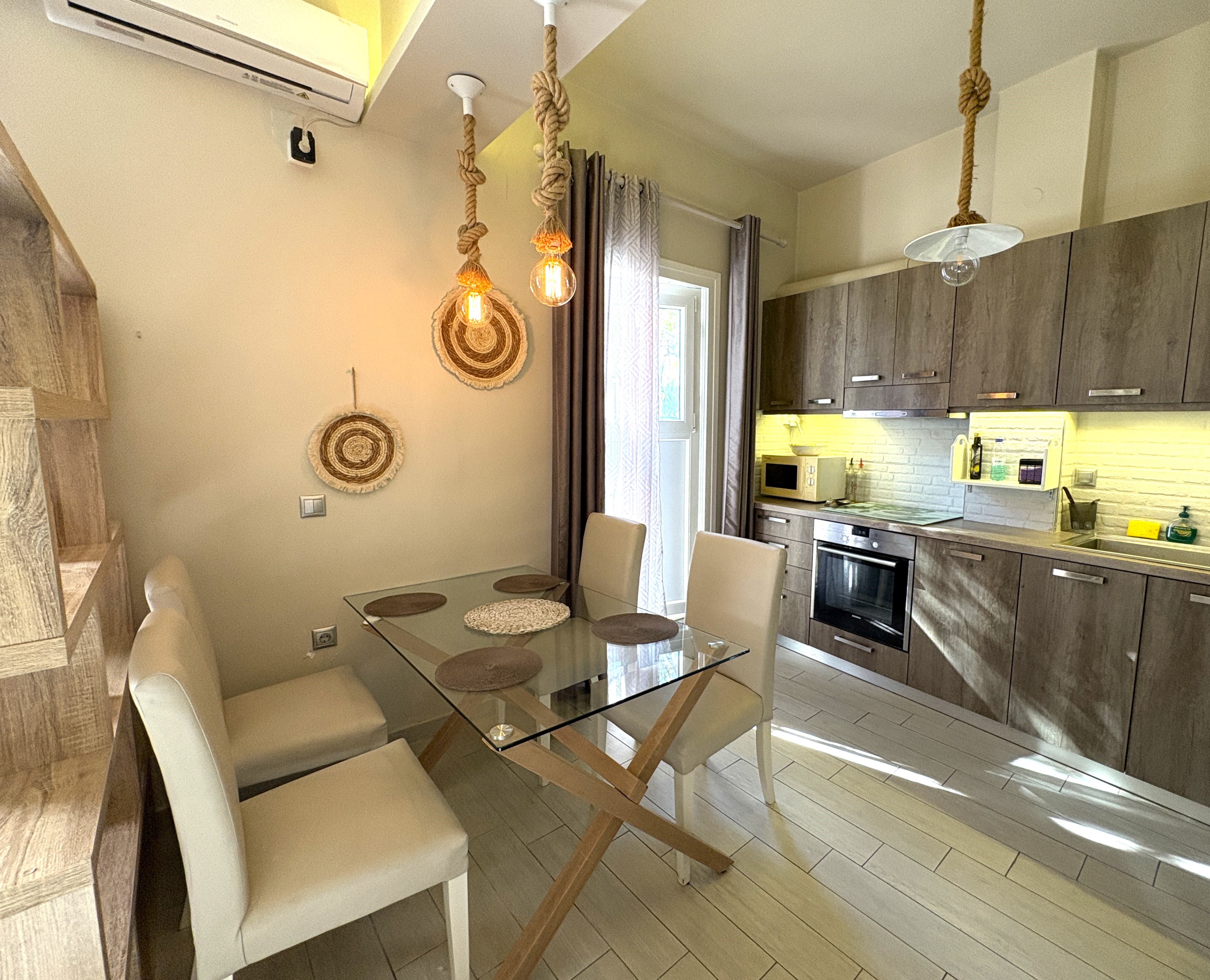 This beautifully renovated ground-floor apartment is located right in the center of Benitses, just 45 meters from the sea. Everything you need is within walking distance, including cafes, restaurants, and a local bus stop that connects you easily with Corfu Town.Inside, the property offers a modern and practical layout. There's a bright bedroom, a bathroom, and an open-plan living and dining area connected to a fully fitted modern kitchen. The living room has been designed with clean, minimal co...