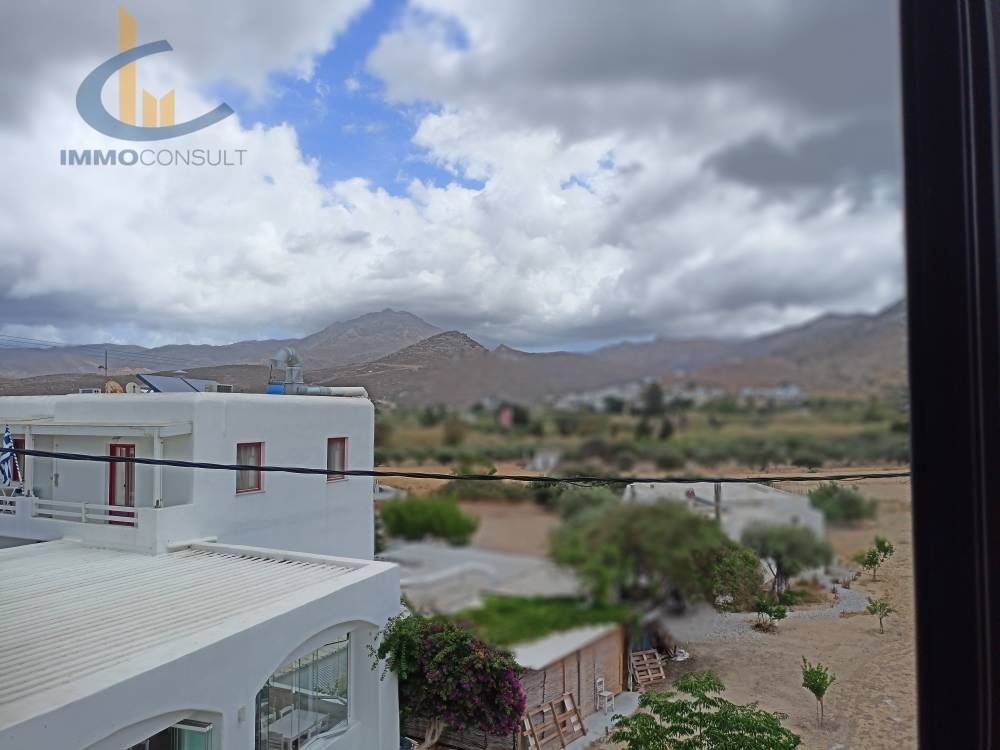Naxos, Galini village, sunny apartment, corner, open horizon, 2.50 km from Amitis beach (30 minutes walk), large living room, dining room, 2 bedrooms, small veranda closed with arches, windows in all rooms, Cycladic architecture, private terrace overlooking the sea, oil autonomy with its own tank. Very good Investment.