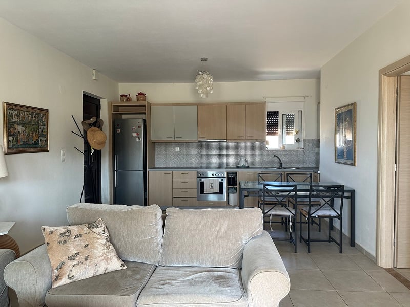 Located in a beautiful seaside development just 150 meters from the sea, this charming first-floor apartment in Panormos offers both comfort and convenience in one of Crete's most picturesque coastal villages. With a total size of 73.68 m2, the property features a bright and spacious layout.The apartment comprises two well-appointed bedrooms, a modern bathroom, and an open-plan kitchen, dining, and living area that flows seamlessly onto a generous covered balcony. From here, you can enjoy relaxi...
