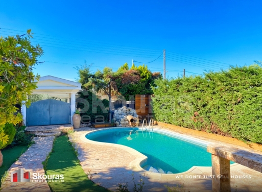 In the area of Poseidonia, in Corinth, a 150 sq.m. ground-floor maisonette with a swimming pool and garden is available for sale, situated in an excellent location with open horizon and panoramic views of the sea, mountains, and greenery. The residence was built in 2005 and is in good condition (repairs are required). It is developed over three levels and consists of three spacious bedrooms, one bathroom, two WCs, a bright and airy living room with a fireplace, a functional kitchen, and an inte...