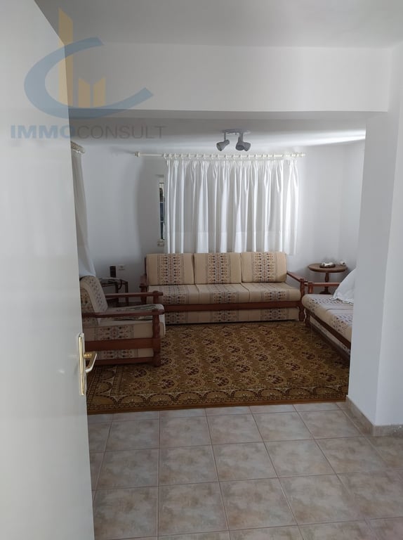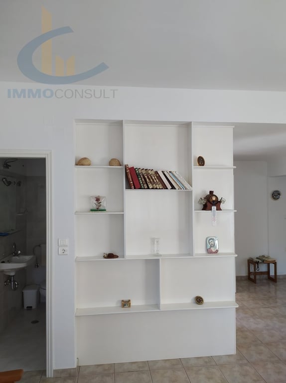 EVIA SETTA. Ground floor apartment 92.50 sq.m. (+ 20sq.m basement storage) which consists of two bedrooms, kitchen, living room and a bathroom. The bedrooms have a fitted wardrobe and the whole floor is tiled. The kitchen has wooden cabinets and a fold, and is in an open space with the living room, in which there is a ready opening in the roof for the construction of a fireplace. The apartment is the top floor of a three-storey building that is on a sloping level so that it has access from the s...