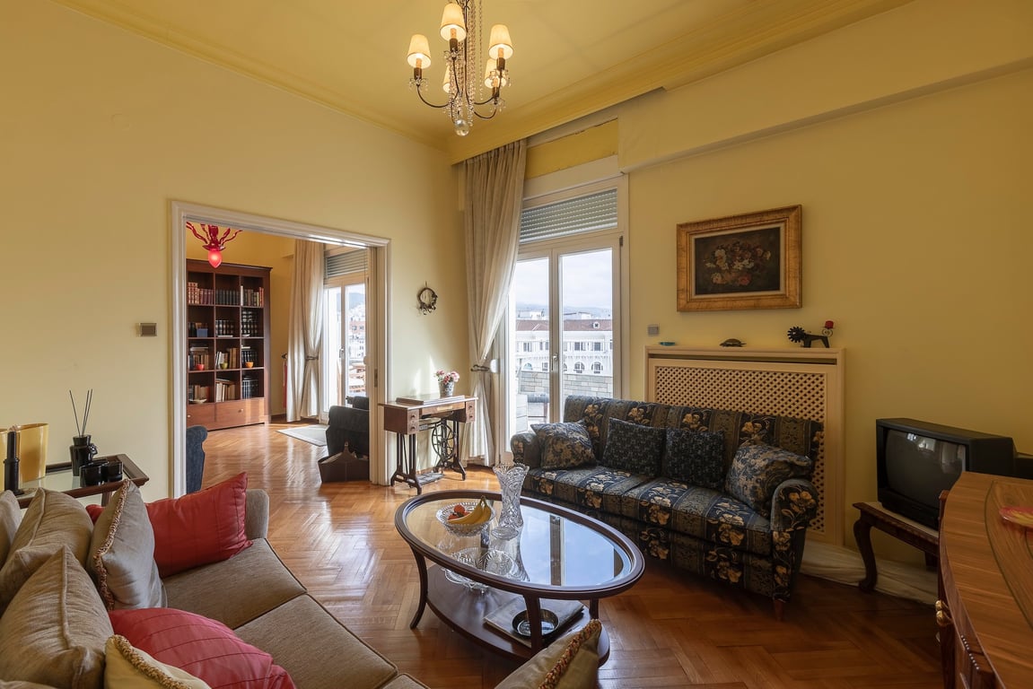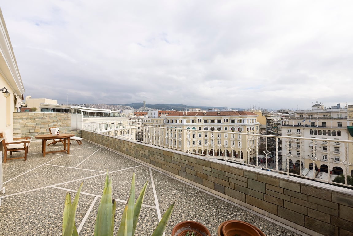 With the Thermaic Gulf unfolding before it and Aristotelous Square at its feet, this rare penthouse captures Thessaloniki at its most iconic. Set within one of Thessaloniki’s most emblematic buildings on Aristotelous Square, this exceptional residence offers a rare opportunity to own property at the very heart of the city’s historic centre. The apartment spans 72 sqm of interior living space and is complemented by an extraordinary 45 sqm private terrace, the true highlight of the property, comma...