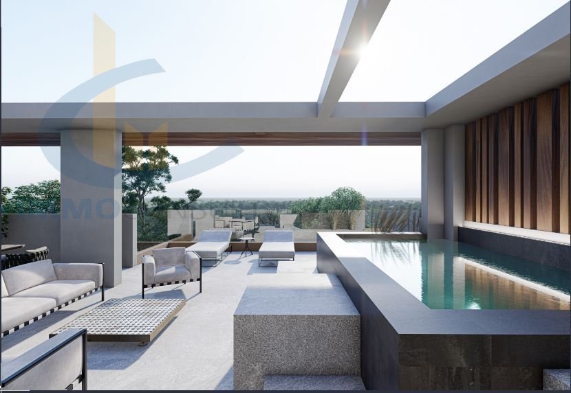 Corner maisonette, 400 m from the beach, 214 sqm, 2nd + 3rd floor, with 3 bedrooms, under construction, finishes on 12/22, consists of 143 sqm on the 2nd floor with 2 bedrooms, and 71 sqm on the 3rd floor with 1 bedroom with the use of 91 sqm on the roof with pool and pergola, and communicates on the one hand with the rest of the apartment with an internal staircase as well as with the stairwell with a security door. The maisonette is bright, with autonomous underfloor heating with natural gas b...