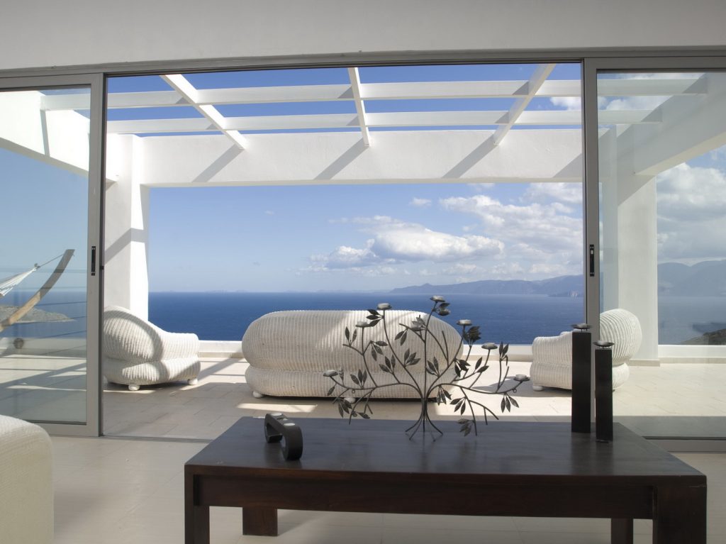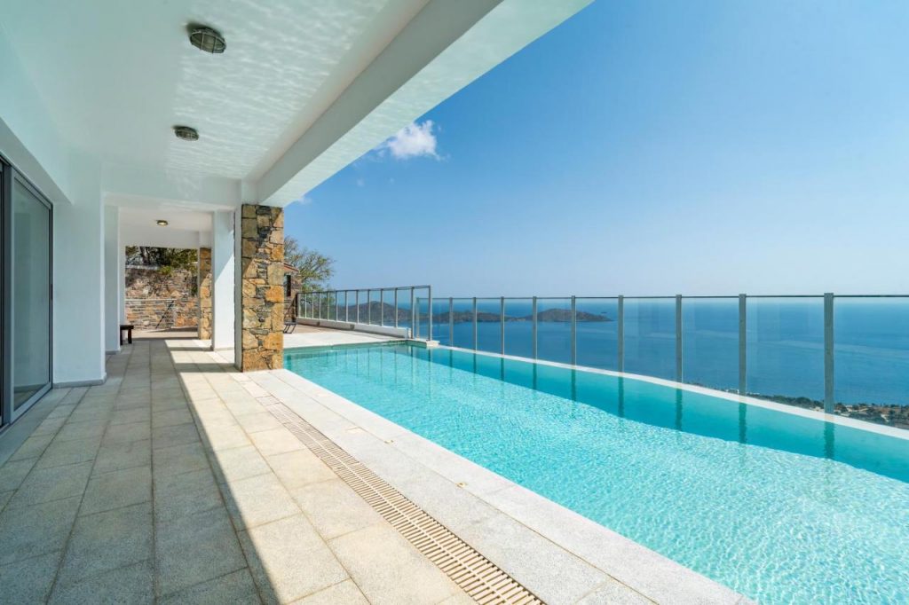Located on the most desirable area between Agios Nikolaos and Elounda on a hillside, this villa overlooks the sparkling blue Aegean Sea from every room and the mountains of Sitia. The villa of 330m2 built on a plot of 2.100m2 comprises four bedrooms with five independent bathrooms plus open bathtubs with Jacuzzi on each bedroom. On the entrance level there are two bedrooms with en suite bathrooms and open bathtubs with Jacuzzi, a guests WC and the kitchen/dining area that overlooks the pool an...