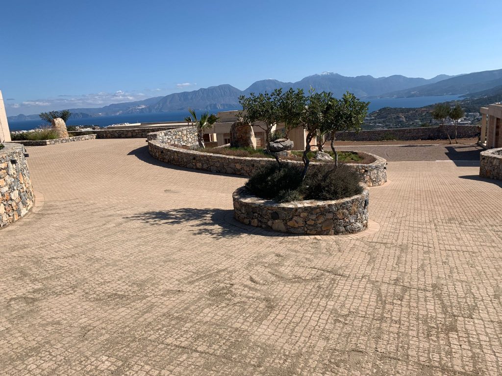Set at the west of the cosmopolitan town of Agios Nikolaos on a hill overlooking the bay and city this is an exclusive, gated and walled property only a short drive to the center of the town of Agios Nikolaos and to several sandy beaches. The property (private plot of 4025m2) has a remote controlled wooden and iron gate giving access to the private driveway which gives access to two garage spots as well as several parking spaces along the property. It is very private as there are not any houses...