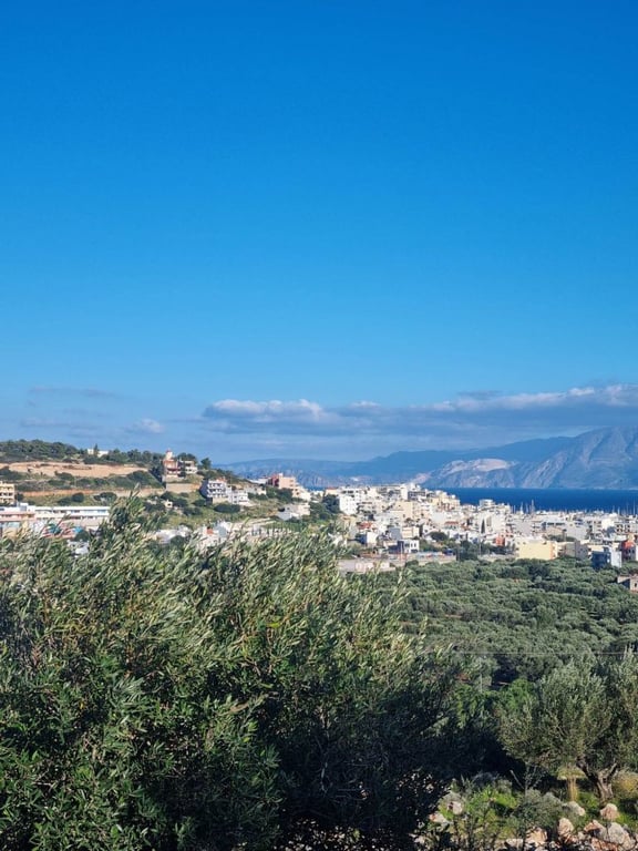 Building plot of 5350 m2, nicely positioned on the top of a hill (51m above sea level) in the western outskirts of the cosmopolitan tourist town of Agios Nikolaos. It enjoys unobstructed views of the sea, the town and the mountains. It has a building license for two beautiful 3-bedroom villas, each with 114 m2 of living spaces on two floors + basement + garage. Enough space would be left to also build swimming pools, garden areas and parking areas, tennis court etc. The land is fenced and has...