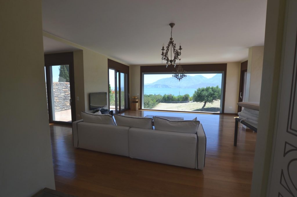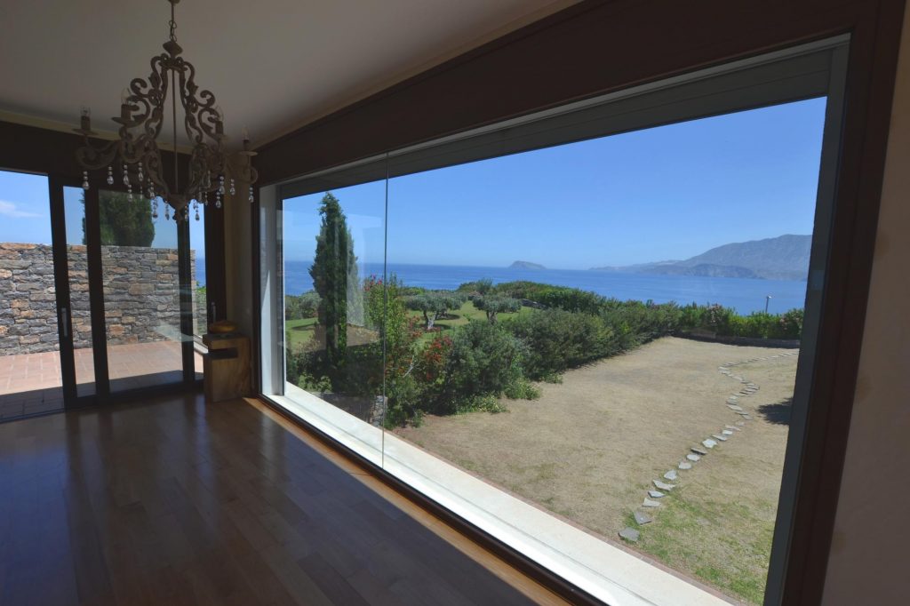 A wonderful sea-front villa in the area of Istron, Kalo Chorio, Agios Nikolaos, Lasithi, Crete. The villa is part of a purposely built complex of 25 luxury villas, located on a private peninsula. The complex offers 24 hour security and management services. The villa is built on a private plot of approximately 2000 square meters. It stands on two floors. The top floor consists of an open plan living room/fully fitted kitchen and a guest WC. A large sliding glass door gives access to the pool and...