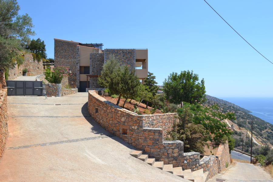 A fantastic property just 3 kilometers (1,86 miles) from the modern tourist town of Agios Nikolaos. This property has it all, the swimming pool, the breathtaking views, the spacious reception areas, the conveniences and facilities one expects from a truly luxurious villa. The stone clad villa stands on a private plot of 1700 square meters(18.300 square feet) there are a few parking spaces and a garden area in front of it. The entrance of the building leads to the open plan living room/kitchen...