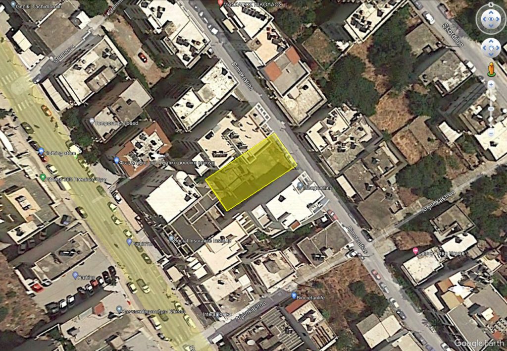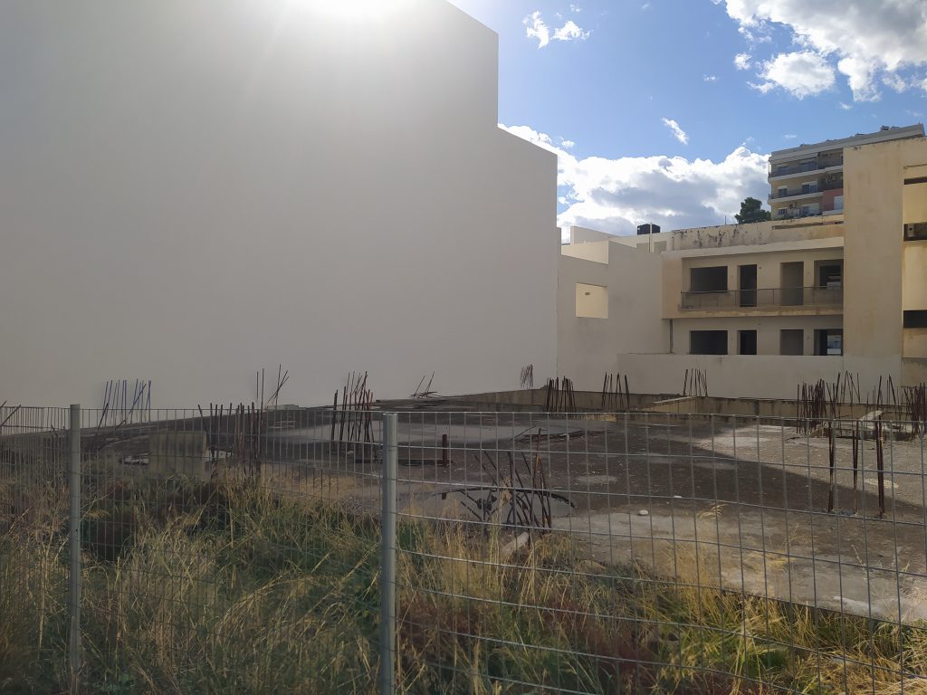 Building plot of 370 m2, nicely positioned inside the town of Agios Nikolaos, in a commercially advantageous position, either next to or very near to plenty of shops and amenities. It has the allowance to build up to 555 m2 on up to 4 floors, plus basement. It already has a building license for a 3-storey building with basement. The basement level has already been built and exists in an unfinished state (concrete skeleton). The plot has asphalt road access and all services (electricity, water ...
