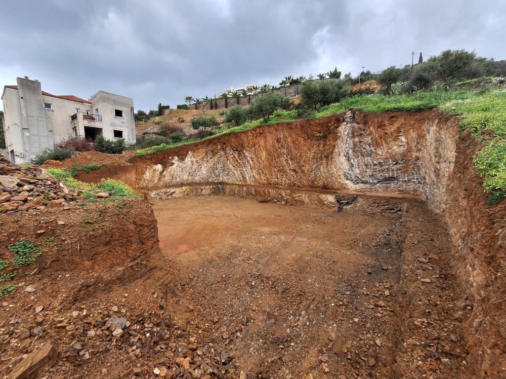 Plot of building land positioned on the gentle slope of a hill, east of the village of Katsikia, in the northern outskirts of Agios Nikolaos, Crete. The plot is 2209 m2 in size and suitable for both residential or tourist development. It already has a building license for a tourist apartment building of 199.70 m2 on two floors, plus a basement of 115.10 m2 and a large swimming pool of 82.50 m2. As can be seen in the photos, excavation work has already been completed which saves the buyer a sign...