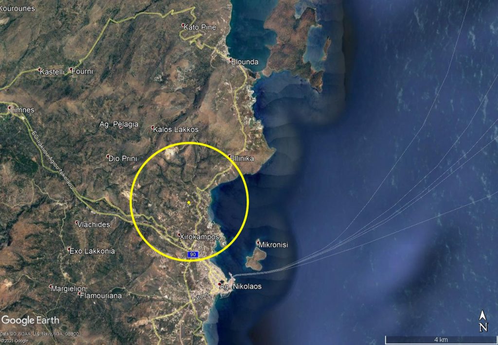 Plot of building land, nicely positioned on the slope of a hill, right next to the village of Katsikia, only a 5-minute drive north of the tourist town Agios Nikolaos, provincial capital of Lasith (East Crete). From its elevated position, the land enjoys wonderful, unobstructed views of the coastal region north of Agios Nikolaos, the Mirabello Bay and surrounding mountains. The plot is 3503 m2 in size and has the planning permission (allowance) for a house or houses of up to a total of 200 m2 o...