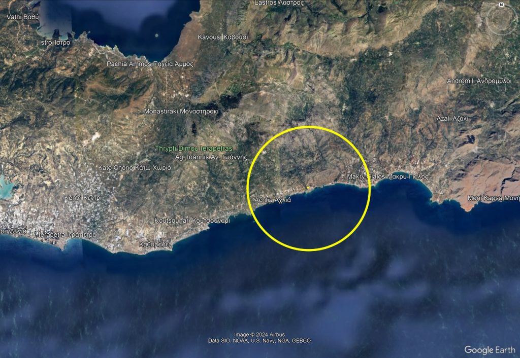 Beautiful building plot in the area of Mavros Kolympos, near the popular tourist resort of Makrygialos at the eastern south coast of Crete, only 250m from the sea (on a straight line). It enjoys nice unobstructed views of the Lybian Sea and the mountains. The land is 3848 m2 in size and has the planning permission (allowance) for a house or houses / villas of up to 400 m2, built on one or two floors, plus basement and attic. There is good road access (asphalt) and all services (electricity, wat...