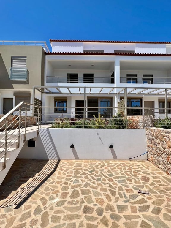 Situated in Amoudara, Agios Nikolaos, Lasithi, Crete a small beach resort just 4 kilometers south of the cosmopolitan tourist town of Agios Nikolaos this villa is part of 5 villa project. The 105 square meter house stands on 3 floors. The ground floor comprises a living room with large balcony doors on to the front terrace, a fully fitted kitchen and a WC. A marble staircase leads up to the middle floor where there are two double bedrooms both with fitted wardrobes and access to a common balco...
