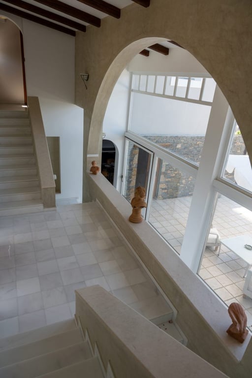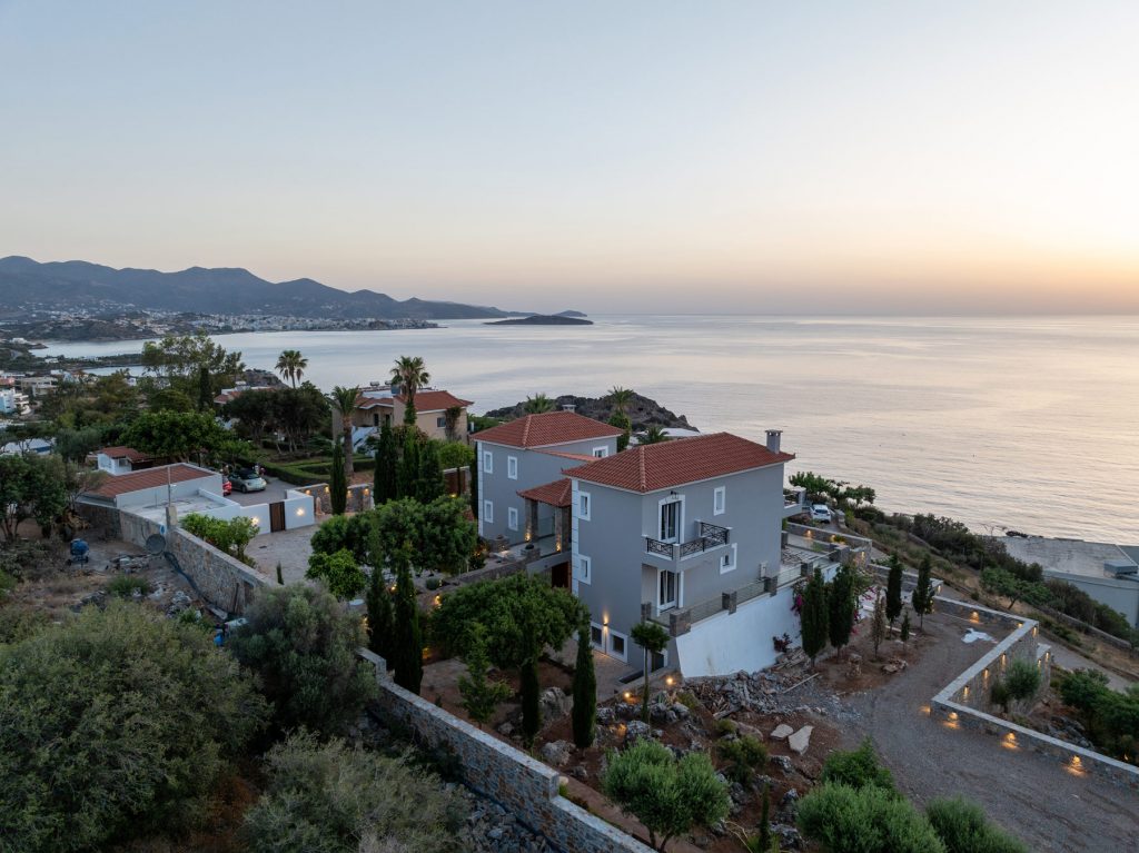 This utstanding villa is situated on top of a hill on a plot of land extending to approximately 5000m2. Located only 3km from Agios Nikolaos, this majestic residence offers magnificent views of the magnificent Mirabello Bay and is only 200m from a pristine beach. With two floors of luxurious and modern living spaces and a spacious ground floor awaiting renovation, this property presents endless possibilities. Currently, the ground floor which comprises a total surface area of 248m2, includes fo...