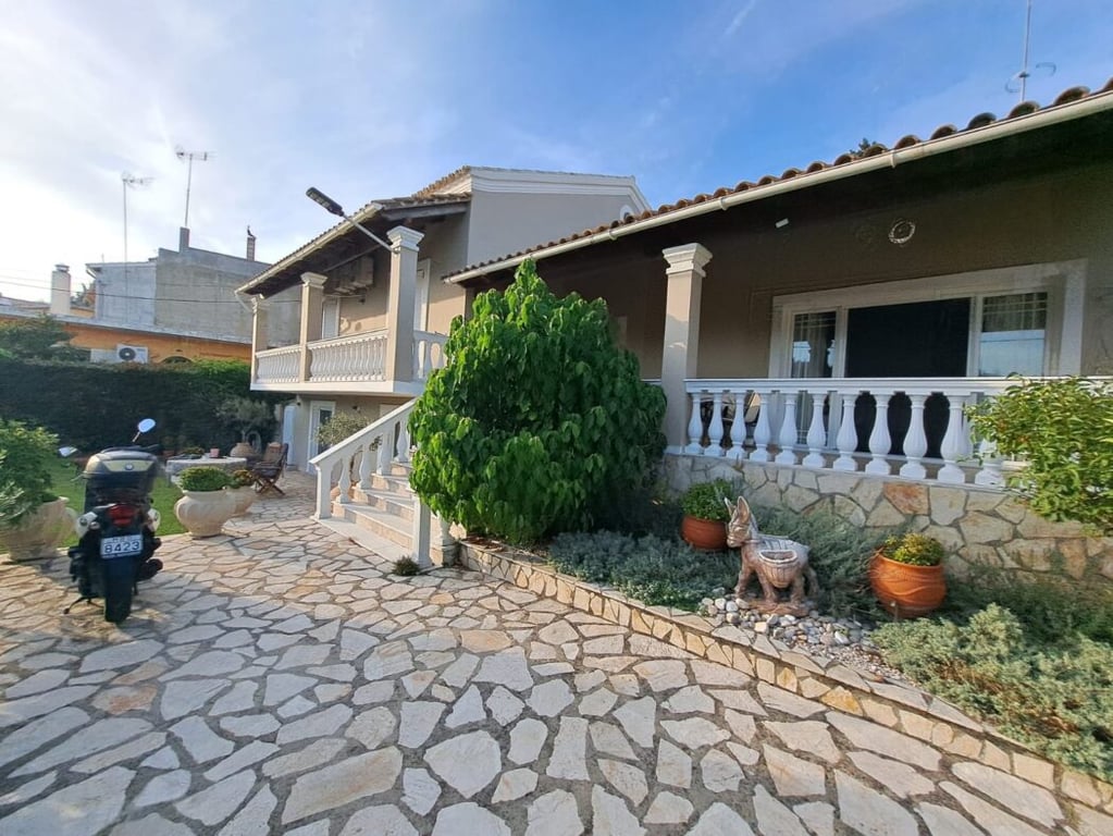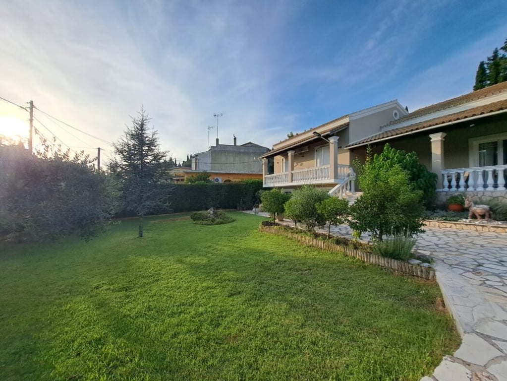 Experience the charm of this spacious 3-bedroom detached house with an additional guest apartment, ideally located in Analipsis, Ipsos, only 1 km from the beach. This 230m2 property sits on a 1000m2 plot.As you arrive, a private paved driveway leads to the house, surrounded by beautifully landscaped gardens, offering space for a private pool. The outdoor area features terraces, a built-in BBQ, and dining space for delightful al fresco moments.The main house boasts an open-plan living and dining ...