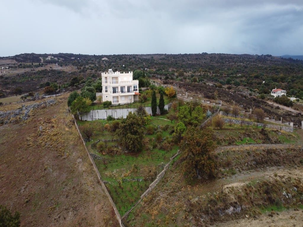 This is an amazing villa for sale in Rethimno, Crete, located in the village of Atsipopoulo, providing forever unobstructed 360-degree views of the sea, the mountains and the countryside. The property has a total living space of 395 m2 sitting on a 4100 m2 private plot, while there is also an adjacent plot of 1500 m2 on its side. It consists of 5 bedrooms and 5 bathrooms, and it is developed over 3 floors. On the first level, there is 1 bedroom with a balcony, 1 full bathroom, one large garage a...