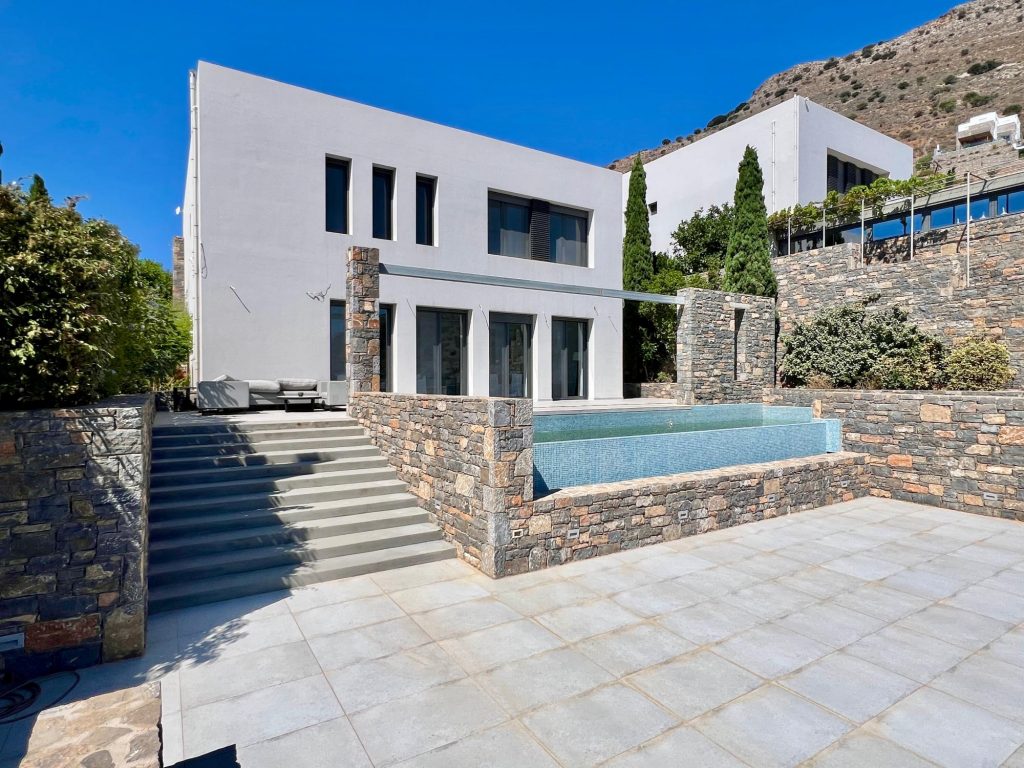 Set on a hillside facing the historical island of Spinalonga and enjoying uninterrupted bay views this luxury 5 bedroom villa is the ideal exclusive resort accommodation for you and your loved ones. This villa has the potential to yield a high rental income. The luxurious villa comprises on the entrance level a living room, a dining table, a kitchen, a guest WC, the boiler room, external terraces, a swimming pool and a garden. On the intermediate level there is a double bedroom with en-suite b...