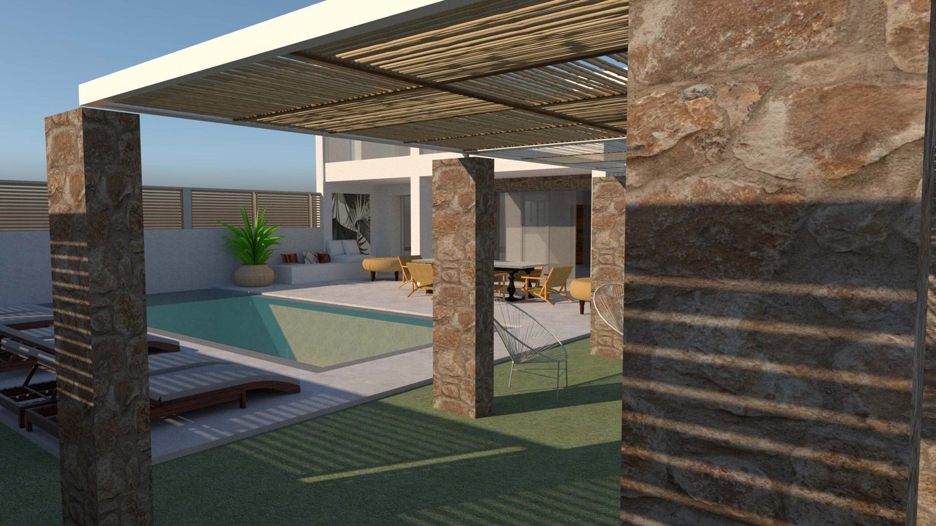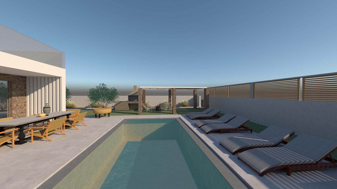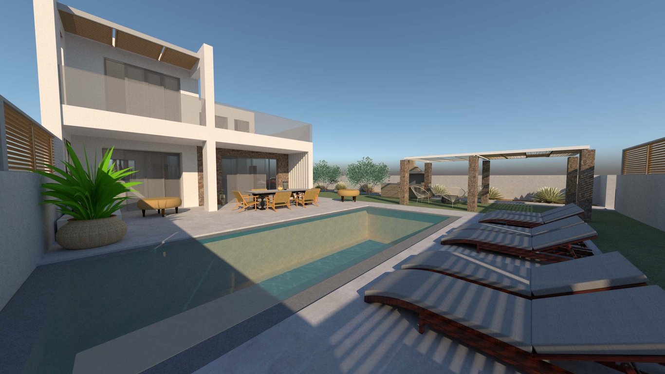 This is an under construction villa for sale in Chorafakia, Chania Crete, located on the Akrotiri peninsula. It has a total living space of 126 m2, sitting on a 486 m2 private plot. It consists of 3 bedrooms and 2 bathrooms, developed in 2 levels. On the ground floor, there is an airy kitchen connected to the spacious living and dining room that has direct access to the swimming pool. On this level, there is also one bedroom and one bathroom. Upstairs, the property features 2 bedrooms and one b...