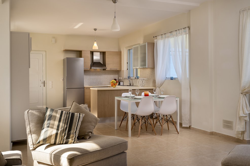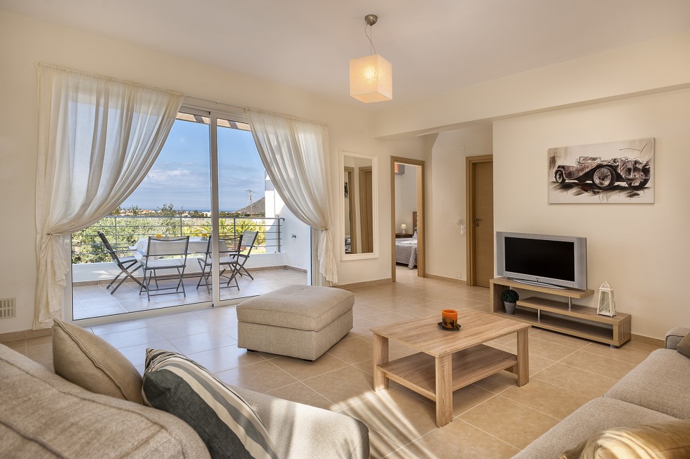 This 2-bedroom, first floor apartment, of 91sqms is part of a completed development of 5 homes, set in the heart of the traditional village of Chorafakia, Akrotiri, in Chania. With numerous shops, school, mini-market and tavernas nearby, this apartment for sale in Chania Crete is located in a quiet area, off the main road and offers outstanding, open views to the Bay of Chania, Mountains of Stavros and White Mountains of Crete. Completed to a very high standard, this apartment is set in a gate...